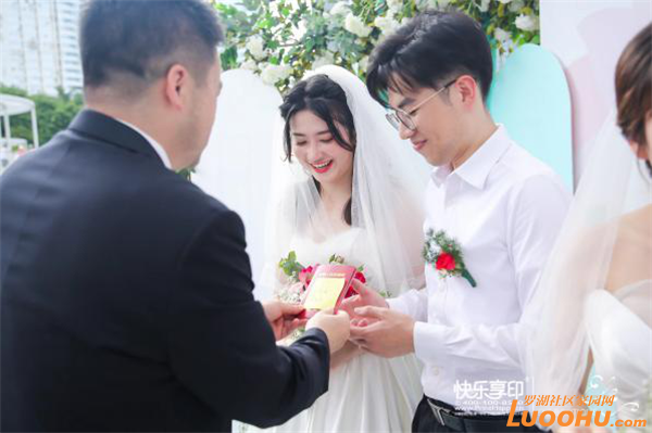 罗湖区委常委、宣传部部长吕漫妮,罗湖区民政局局长杨文秀,罗湖区民政局副局长蓝茜,2021年深圳市“最美家庭”的获得者李道伦和王蓬勃夫妇,罗湖公益“红娘”汪朝晖作为特邀颁证师,分别给9对新人颁证。