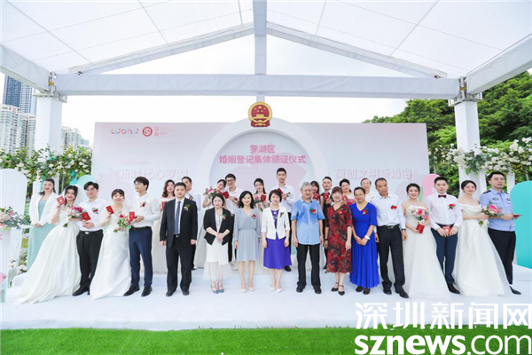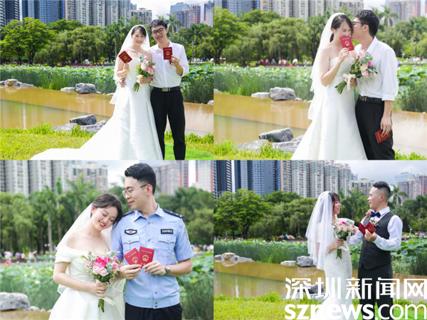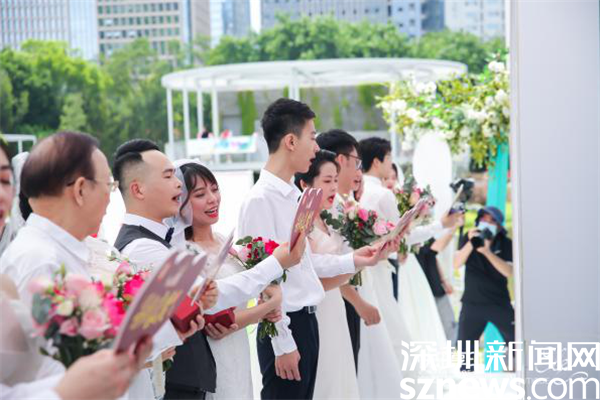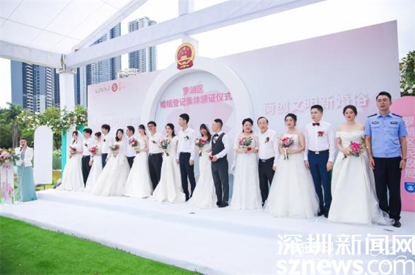 读特客户端·深圳新闻网2022年6月17日讯(记者 李慧 通讯员 杨嘉雯)6月中旬的洪湖公园,荷花盛开,17日早上,罗湖区民政局把婚姻登记颁证厅搬到这优美环境、文明的氛围中,举办“新时代心罗湖,荷创文明新婚俗”婚礼登记集体颁证仪式。现场以并蒂莲为背景,以文明、时尚、简约作为主题元素,提倡“重登记、强责任、崇节俭”的文明新婚俗。