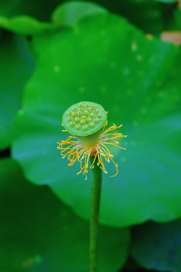 夏风轻轻拂过“害羞”的小莲蓬,翠绿的荷叶层层叠叠,错落有致。