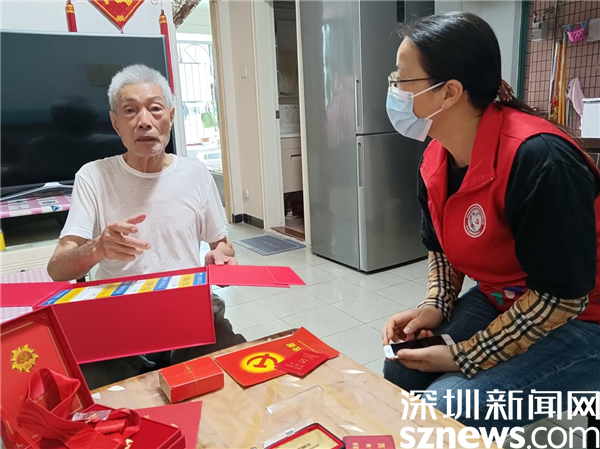读特客户端·深圳新闻网2022年7月2日讯(记者 谢秋平 通讯员 杨纪欧)老党员,是党和国家的宝贵财富,从他们身上的故事,可以让人感受到沉淀了大半个世纪的精神文化。在罗湖区桂园街道老围社区,有这么一些老党员,他们一生忠诚于党的事业,为年轻人做出了表率作用,让年轻人从中汲取力量,争做新时代的有为青年。七一之际,社区组织看望老党员。从老党员林旭家里出来,年轻的社工张由慧情绪振奋,她说也要积极争取入党,成为中国共产党的一份子,在社区文明建设中,用实际行动诠释先锋精神,奋斗文化。
