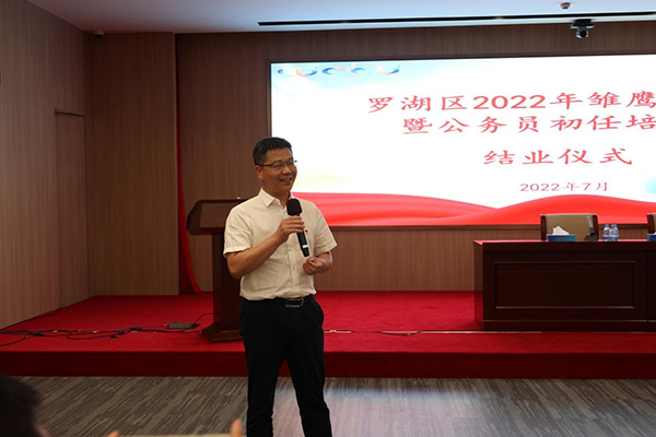 结业仪式上,区委组织部常务副部长高延勇对此次罗湖区“雏鹰训练营”取得的成效给予了充分肯定,对各位学员通过一个月培训取得的进步和成长表示了祝贺,并从5个方面对罗湖“雏鹰”提出了殷殷期望:一是提高政治意识,把自身工作融入到区委区政府中心工作中去,强化责任心,增强年轻干部使命感;二是争做“先锋者”,积极践行罗湖“先锋精神、奋斗文化”,敢于争先,勇于担当;三是增强创新创造意识,发挥年轻人的优势,多做“无中生有”的事情,多做示范引领的工作;四是提升战略思维,胸怀“国之大者”,善于从大局出发思考问题、谋划工作;五是保持廉洁自律,从入职一开始就紧绷廉洁从政这根弦,努力成为心中有“秤”的年轻干部。