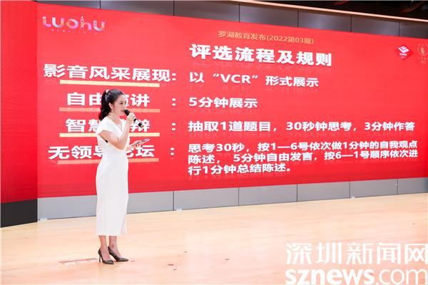 读特客户端·深圳新闻网2022年7月18日讯(记者 郭含笑)7月18日下午,2022年深圳市罗湖区基础教育系统中小学“年度教师”现场评选活动举办,经过一下午的激烈角逐,翠园初级中学余晴从6位候选人中脱颖而出,获评罗湖区2022年“年度教师”,将由罗湖区教育局推荐参加深圳市“年度教师”的评选。