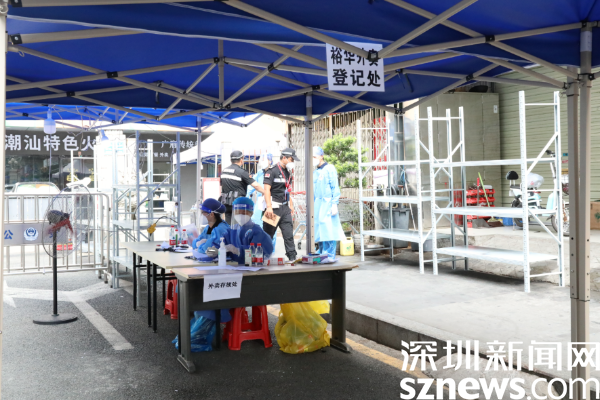 7月25日上午,记者来到笋岗街道梅园小区,现场看到小区卡口处,设立了梅园登记处和裕华外卖登记处,这里登记的物资将有两个物资转运专班负责运送。据了解,物资转运专班实行24小时轮班值守,负责接收并登记外卖、快递等物品,再由专人送至每户楼下,确保物品在15分钟内送达。烈日炎炎下,负责配送的工作人员,没几个来回就已经大汗淋漓,但他们仍坚守在各自的岗位上。