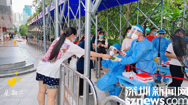 读特客户端·深圳新闻网2022年7月25日讯(记者 谢秋平)疫情当前,核酸检测成为居民的“日常打卡”。为了保障高温下核酸检测的日常运行,罗湖多措并举开展降温解暑措施,近日,移动式核酸采样小屋和遮阳帐篷在罗湖区南湖街道文锦社区亮相,为烈日下的“大白”提供了舒适的核酸采样工作环境,同时,也为前来核酸采样的市民缓解暑热。