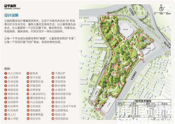 本次设计方案包含四大亮点。一是以生肖记忆为原型所建设的六大新型游戏活动区。其中包含深圳最新型“空间攀爬”游戏乐园、首创动态沙地玩法的“沙动力”乐园、超有科技含量的“水动力”乐园等,培养儿童体能、技能、探索能力、参与意识、社交能力、环境掌控、策略能力等不同的潜能。二是尊重公园35年历史,保留改造公园大笨象滑梯与生肖雕塑等美好回忆。三是将整个公园塑造成儿童自发创造性的自然游戏场,鼓励儿童自发地感知自然、探索自然,在自然中强身健体。四是充分落实儿童视角,维护童心。对于儿童公园的可达性进行优化与提升,创造安全、友好、舒适的出行环境;从儿童角度出发,建立儿童优先的服务环境。