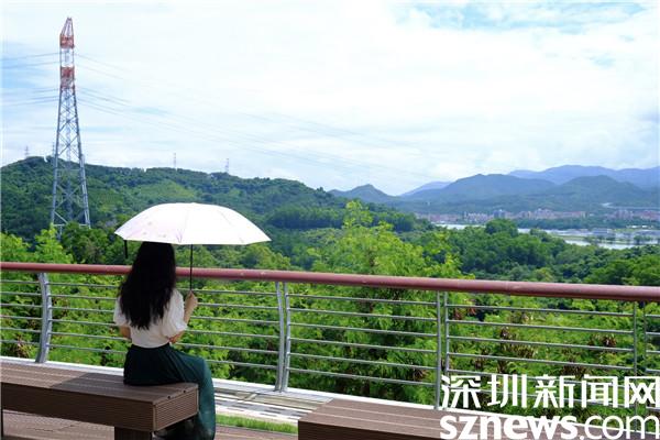 在绿道上,有多个位置可俯瞰深圳水库,远眺梧桐山电视塔、仙湖植物园、东湖公园等美景。