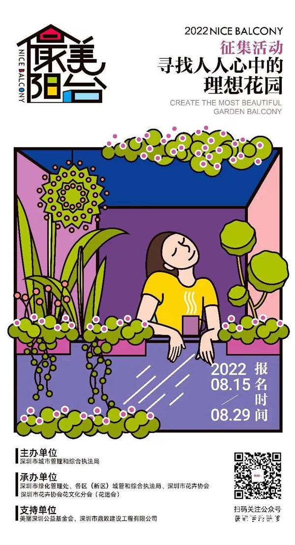 2022年,深圳市城市管理和综合执法局推出“十大城市管理公共文化品牌”,坚持以人为本,致力于顺应人民群众新期待,鼓励发动市民广泛参与城市管理活动,共建共享美好宜居城市。其中,“最美阳台”系列活动作为“十大城市管理公共文化品牌”的重要内容,将为每一个热爱生活的市民提供平台,积极倡导绿色低碳理念,引领绿色健康生活方式,展示市民亲手打造充满诗意和生活气息的家庭阳台,展现深圳市民素质,推动城市管理共治共管、共建共享。