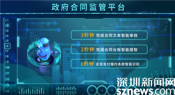 推行改革后,罗湖搭建了全国首个智慧化政府合同履约监管平台,全面纳管党政机关、学校、医院等205个财政预算单位,实现政府合同“全生命周期”信息化。平台充分运用科技手段实现“智慧化”,运用最新的智能语义分析技术,对合同的合规性、严重风险、一般风险、缺失条款四大方面1093项风险进行智能检测,形成罗湖监管模式“321”效率,即3秒钟完成合同文本智能审核、2秒钟完成合同台账智能提取、1秒钟实现支付履约条款智能识别,及时发现并提示风险,提高政府治理数字化智能化水平。