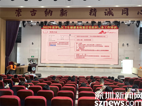 为进一步加强党务工作者队伍建设,提高基层党建工作规范化、专业化水平,推动基层党组织全面进步,近日,罗湖区委卫生健康工委举办2022年度罗湖区卫生健康系统基层党组织党务工作培训会。区卫生健康系统各党支部书记、支部委员、党员骨干共213人参加培训。