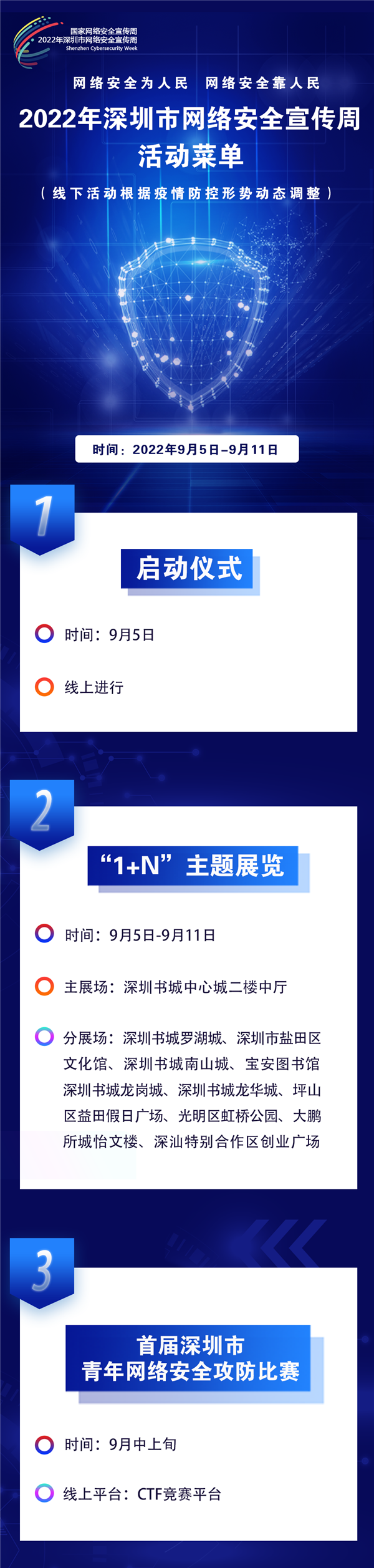 据介绍,2022年罗湖区网络安全宣传周将采取线上与线下相结合、传统媒体与新媒体齐发力的方式,围绕“3+N”的形式开展:“3”包括举办一场主题展览、拍摄一批微电影及策划一系列新媒体创意作品,“N”包括各单位围绕网络安全宣传周开展的一系列活动。