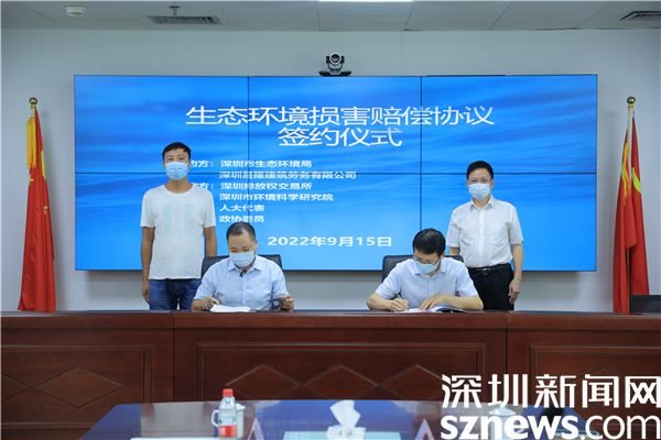 在深圳市环境科学研究院、深圳排放权交易所、人大代表、政协委员共同见证下,罗湖管理局局长唐湘良与深圳某公司代表签署生态环境损害赔偿协议。协议约定,深圳某公司在签约后,将生态环境损害赔偿费用存入在深圳排放权交易所开设的账户,并完成资金冻结。该资金全额用于购买碳普惠产品,支持全民减排、低碳出行。