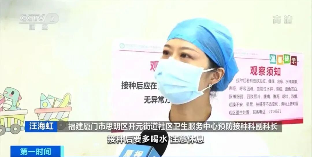 福建厦门市思明区开元街道社区卫生服务中心预防接种科副科长 汪海虹:特别是老年人、在校的学生、抵抗力比较弱的人群,还有医护人员,接种后要多喝水,注意休息。