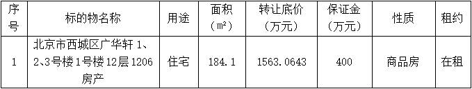 深圳报业集团委托北京产权交易所对北京市西城区广华轩1、2、3号楼1号楼12层1206房产进行公开挂牌交易,北京产权交易所现已公开披露以下转让信息,广泛征集受让方。请有意者登录北京产权交易所官方网站报名办理意向受让申请。