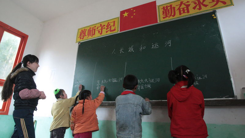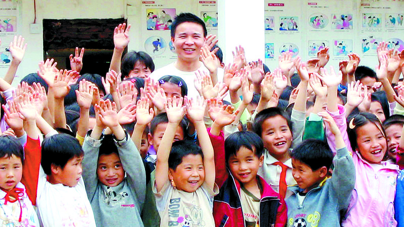 李泓霖在四川绵竹给震后灾区儿童做心理辅导