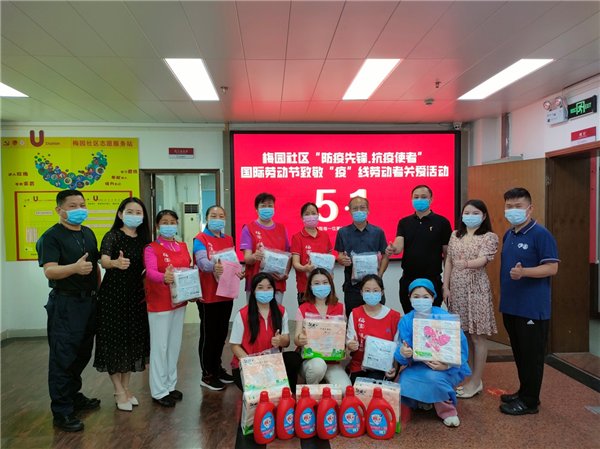 4月29日上午,深圳市罗湖区清水河街道梅园社区党委、梅园社区工作站联合梅园社区党群服务中心在梅园社区新时代文明实践站开展“防疫先锋.抗疫使者”国际劳动节致敬“疫”线劳动者关爱活动。