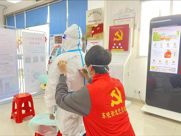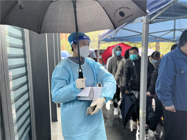 自深圳“0215”疫情突发以来,罗湖东门街道城东社区负责的湖贝社区公园临时核酸点再次启动。核酸点重启的那天,雨哗啦啦的下,负责人事安排、后勤保障的卢映均在工作群看到入口处的同事仅穿着雨衣服务居民的照片,舍不得让站岗的同事长时间淋雨,恨不得自己去扛帐篷,奈何6个月身孕,只能安排现场的同事挪动帐篷,那帐篷沉得要四位男同志才扛得动。