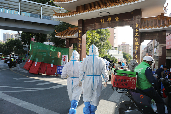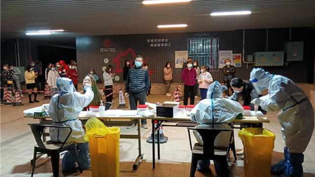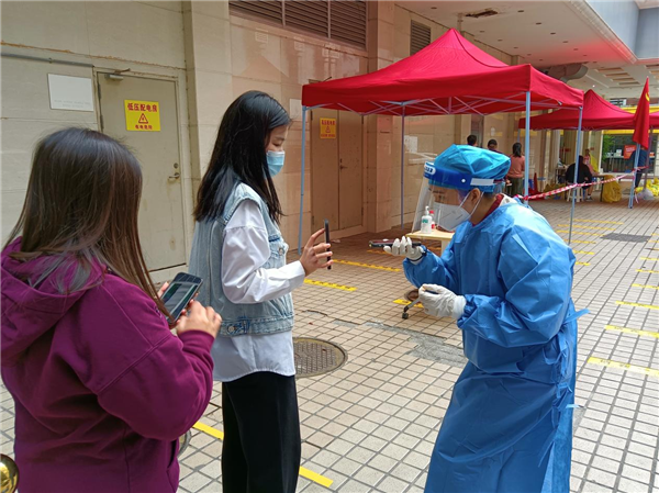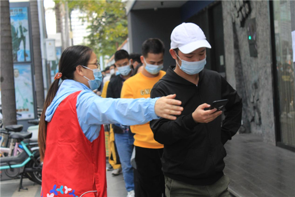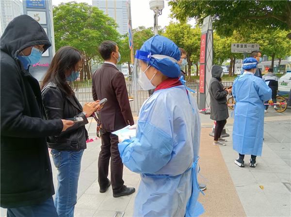 罗湖区桂园街道老围社区党委副书记黄小龙的一声声“金宏伟”,就是一声声战令,金宏伟立刻穿插在老围社区的临时核酸检测点。