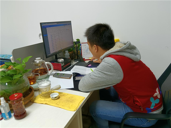 1月14日,因为居住地有密接者,被通知居家隔离,但他并没有停止工作,依然在家里配合数据组进行流调,每天打电话追踪被调查者信息,录入系统更新。