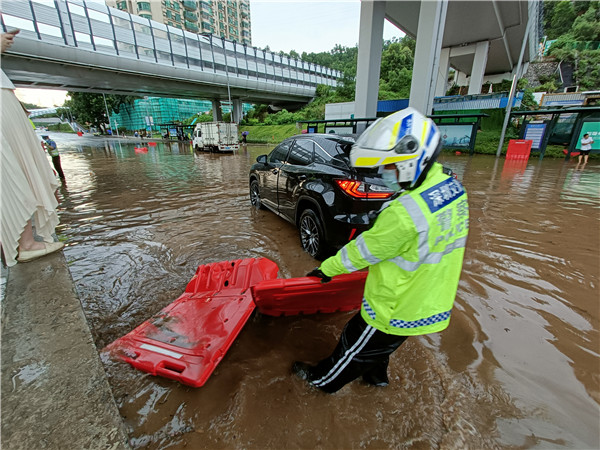 8月18日15:40,深圳市气象台发布暴雨橙色预警。随即,罗湖辖区电闪雷鸣,大雨倾盆而下。莲塘片区罗沙路、沿河路罗芳立交桥路段因地势低洼道路陷入“汪洋”,导致同行中断;文锦中路也因暴雨导致路面积水严重,造成车行缓慢。