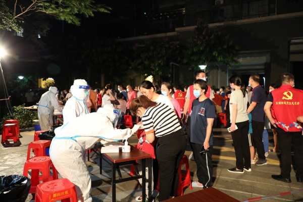 5月26日下午,火速整合各部门、各社区近400名工作人员组成6支防疫突击队伍,街道党工委书记程时菊,党工委副书记刘慧坚、谢统敏、沈文俊,党工委委员方海峰,二级调研员张翠红分别担任6支队伍的督导长,连夜带领突击队员们奔赴各相关社区开展核酸检测工作。