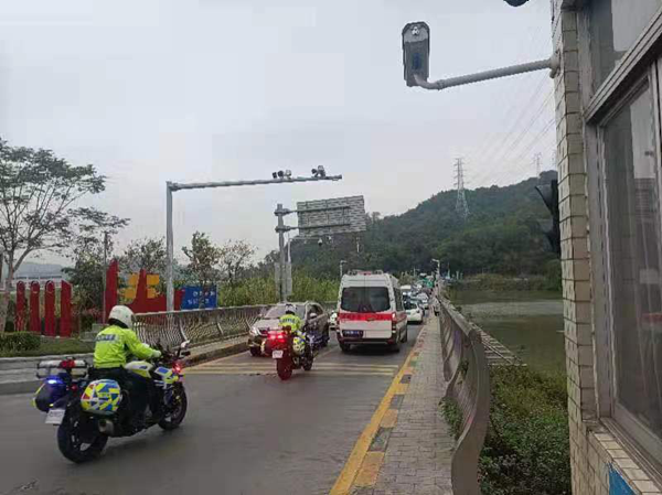 3月21日上午,深圳市罗湖交警大队指挥中心接到一辆救护车的求助,车上载有急需送医抢救的病人,因交通堵塞无法前行。