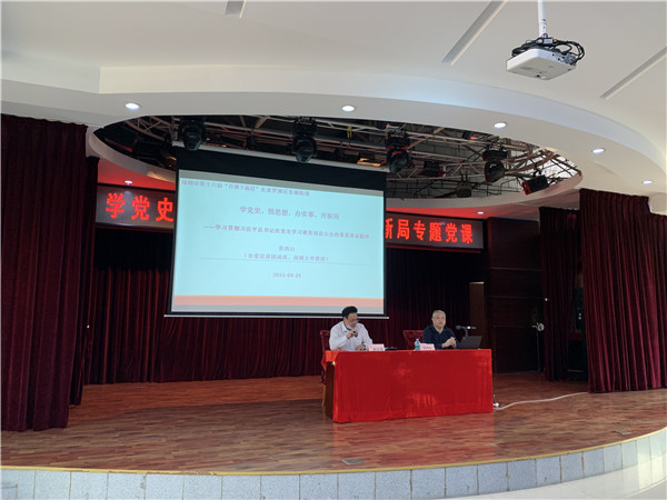3月25日上午,罗湖区东湖街道邀请市宣讲团成员、深圳大学教授张西山主讲“学党史、悟思想、办实事、开新局”专题党课,街道党政领导、机关各党支部全体党员、各社区党委书记、副书记,股份公司董事长、党建组织员、两新党支部委员共120余人参加。党课由街道党工委副书记、人大工委主任谢统敏主持。