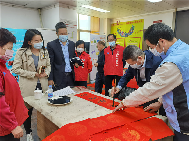 为弘扬经典传统文化,营造浓厚的春节气氛,新春佳节来临之际,1月28日至29日,罗湖区清水河街道梅园社区党委、社区党群服务中心组织开展“墨下书祝福联中显温暖”活动,本次活动邀请了擅长书法的四位社区党支部老党员为辖区居民写春联。