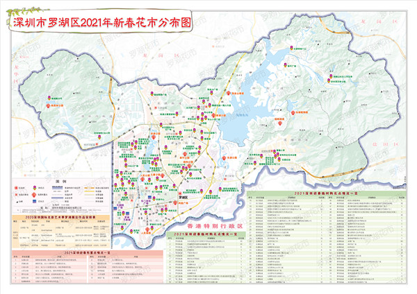 罗湖区共开设近500个花市铺位,遍布全区10个街道,近40个社区。同时,罗湖区还特别制作了花市地图,最大限度的方便市民就近购花。