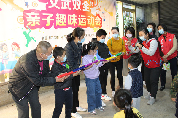 1月30日上午,社区为鼓励社区居民留深过年,专门开展了一场“文武双全”亲子趣味运动会,吸引了众多小朋友及其家长,12对亲子来到现场。