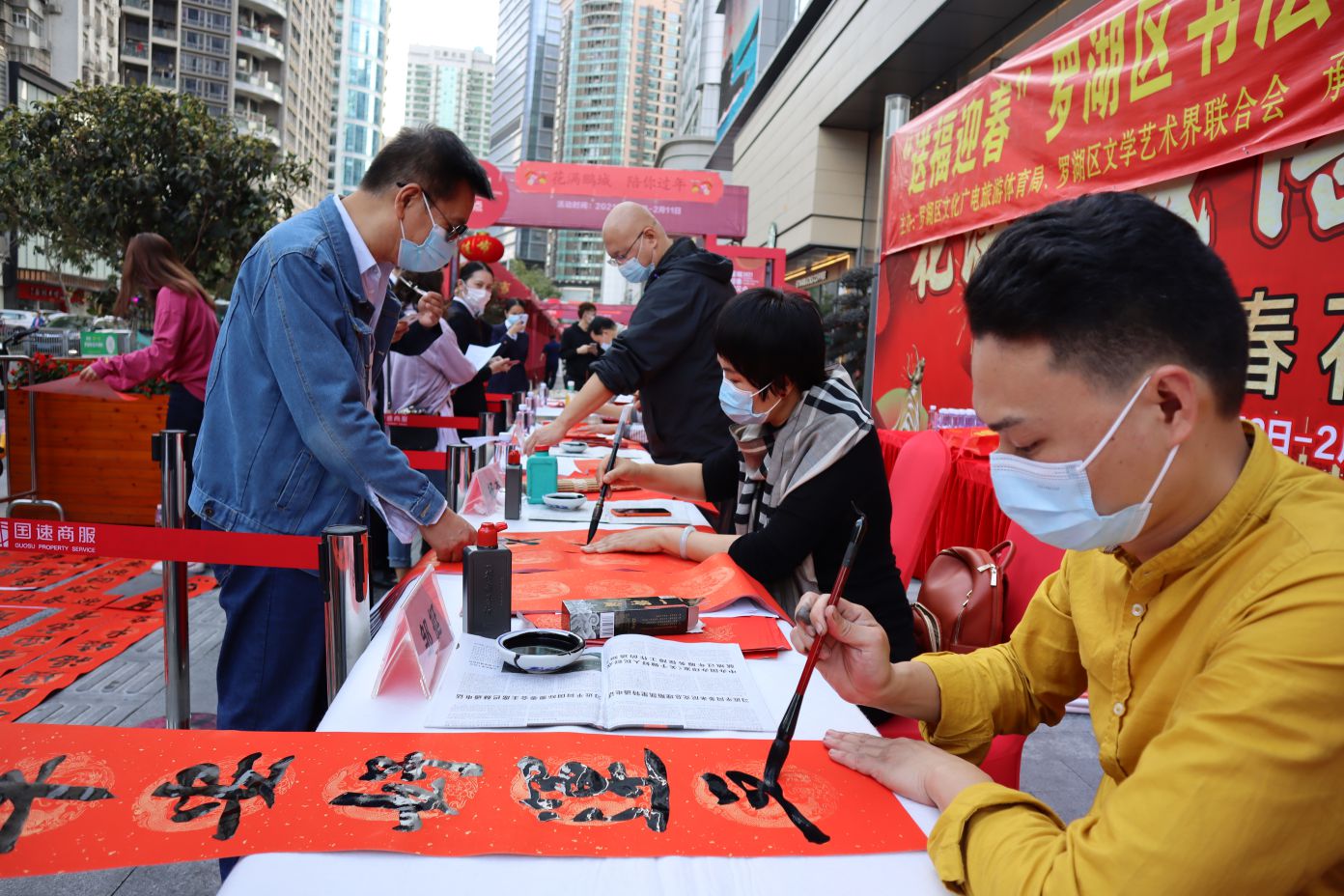 由罗湖区文化广电旅游体育局、罗湖区文学艺术界联合会主办,罗湖区书法家协会承办,国速地产协办的“送福迎春”——罗湖区书法家书赠春联活动2月1日在罗湖区宝安南路国速大厦南广场举行。