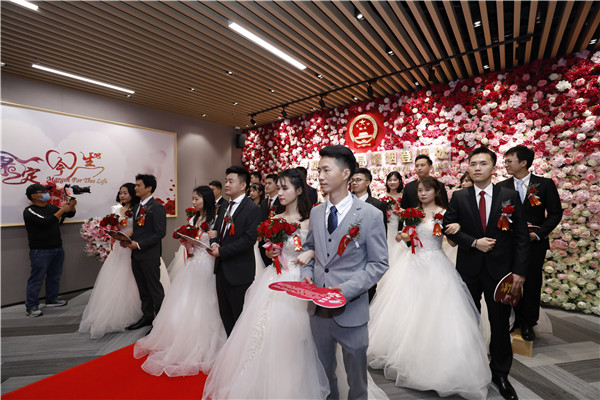 “1212,要爱要爱!我们结婚啦!”,“双十二”对大部分人来说是一个购物的好日子,但对打算步入婚姻的新人们来说,却是一个不可错过的登记好时机。12月12日,罗湖区婚姻登记处四处洋溢着欢乐的笑声,12对新人在满是玫瑰花的登记处中举行集体结婚仪式。据悉,这也是疫情以来罗湖区首场结婚登记集体颁证仪式。