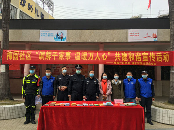 12月15日下午,深圳市罗湖区清水河街道梅园社区党委联合共建单位清水河派出所党总支、社区驻点律师郭佳,开展以“调解千家事 温暖万人心”为主题的结对共建促和谐宣传活动,现场约200余名社区居民参加了本次活动。