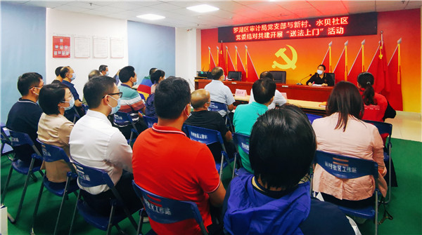 近日,罗湖区审计局党支部“送法上门”,与新村、水贝社区党委结对共建,举办《民法典》“进社区、进家庭”宣讲活动。