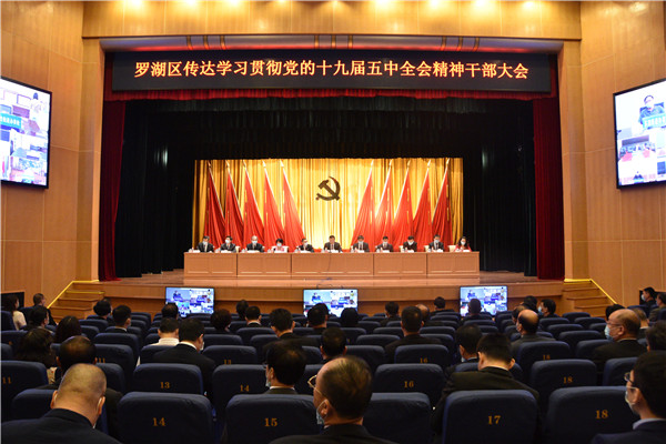 11月4日上午,深圳召开传达学习贯彻党的十九届五中全会精神干部大会。会后,罗湖随即召开全区干部大会,迅速传达学习贯彻党的十九届五中全会精神和省、市有关会议精神,动员全区上下把思想和行动统一到中央、省委、市委的部署要求上来,掀起传达学习宣传贯彻热潮。