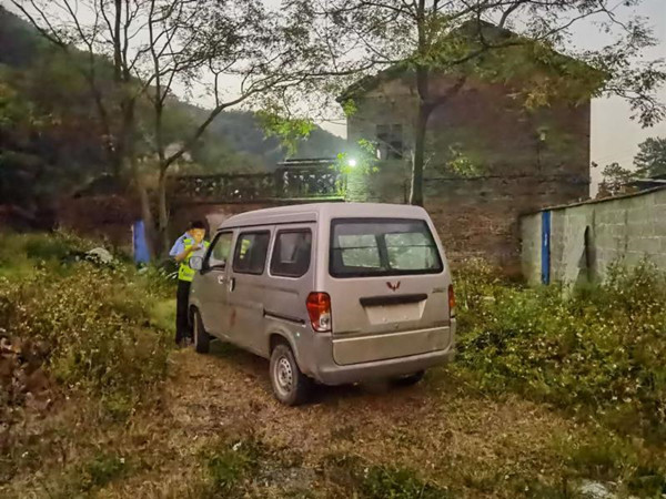 10月27日,罗湖交警借助大数据平台及与广西省贺州市钟山县交警的联合行动,成功在贺州市钟山县某山沟内查获一辆车牌号码为粤B***2C逾期未审验的面包车。