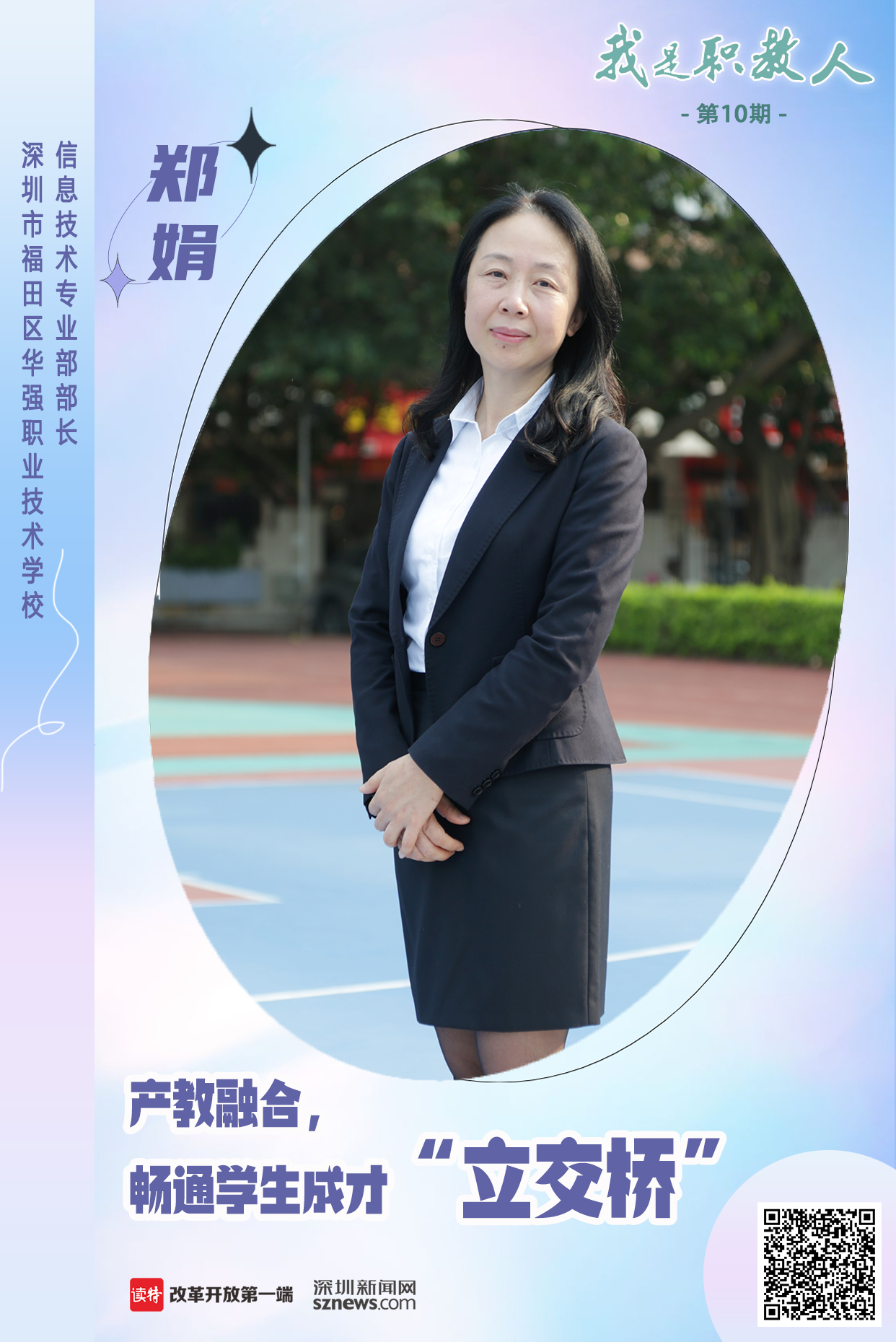 父母的耳濡目染,让她选择成为一位教师;职业教育发展的重要性,让她成为了一名职教人,她是深圳市福田区华强职业技术学校(以下简称“华强职校”)信息技术专业部部长郑娟。