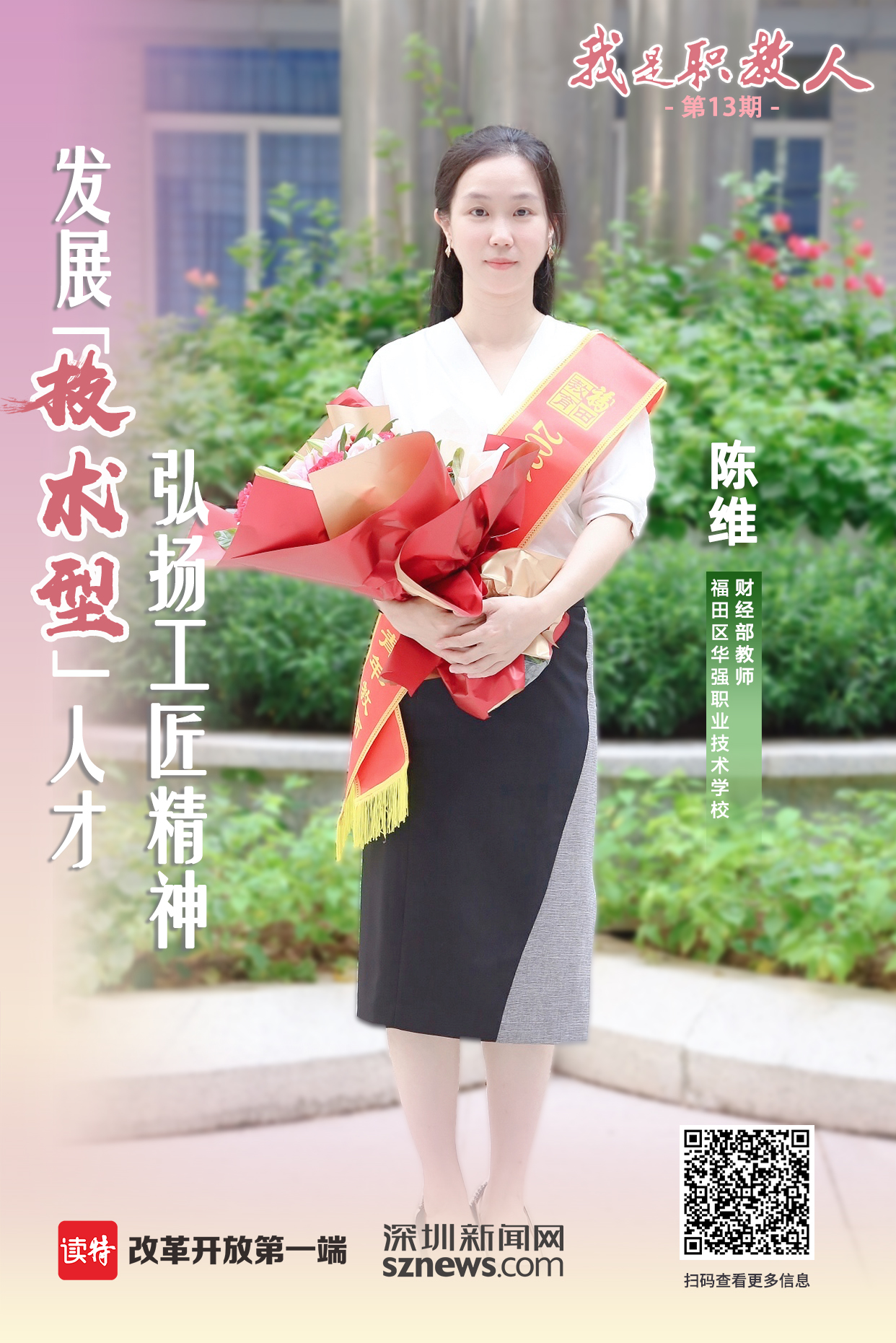 “对生活有热爱,才会变得有趣;对生活和世界保持好奇心,才能拥有创造力和想象力。”从事职业教育的第十年,深圳市福田区华强职业技术学校财经部老师陈维,始终期望学生成为有趣、有技术、有创造力,能为社会做出贡献的人。