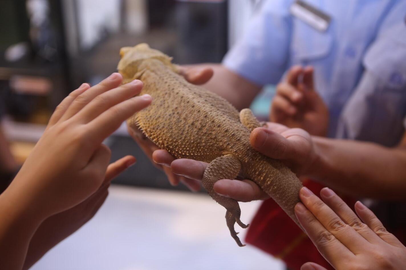 小飞侠们近距离与蜥蜴互动