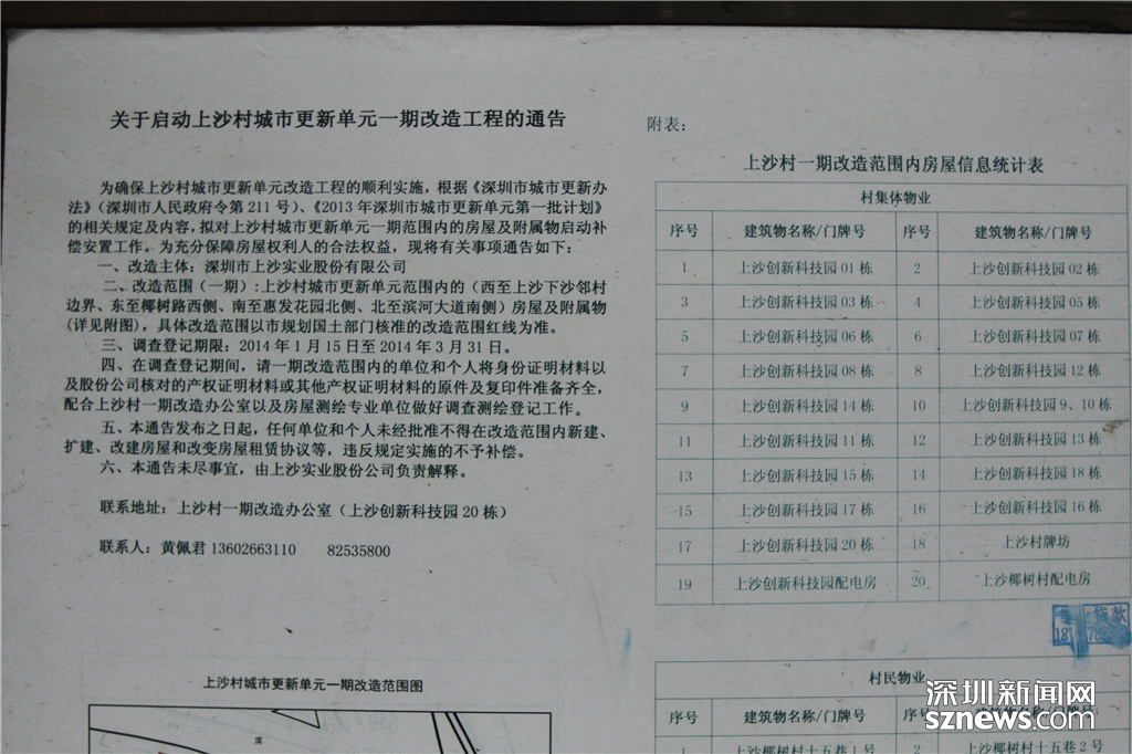 上沙村实业股份公司前的一期改造工程的宣传通告