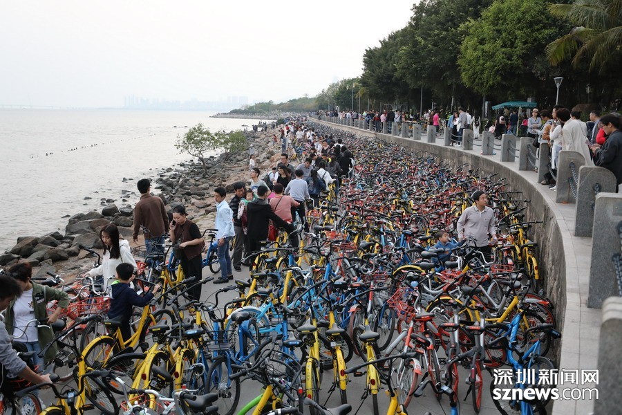 深圳人假日勤动脚,深圳湾公园被自行车堵了