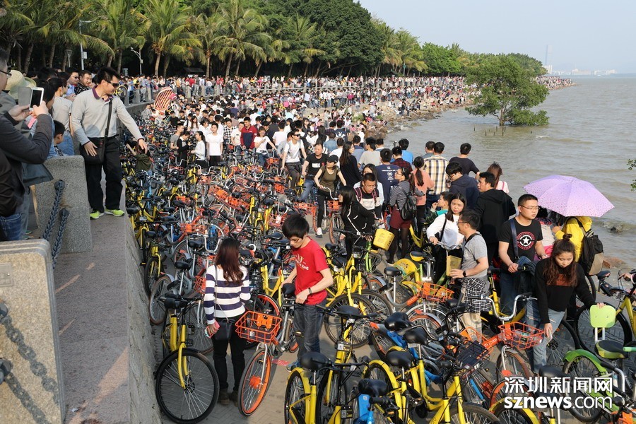 鹏城眼|深圳人假日勤动脚 共享单车“挤爆”深圳湾