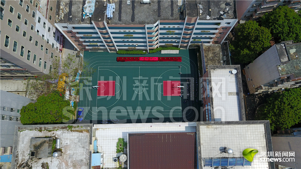 白石洲城中村内的南山星河学校篮球场