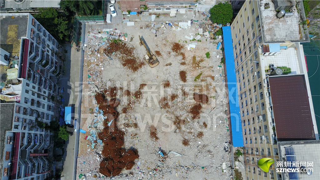 白石洲城中村内的建筑工地,“握手楼”群被推倒,白石洲正在升级