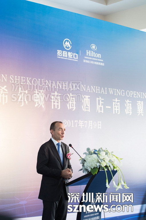 南海翼开业仪式上,希尔顿亚太区总裁马霆锐(Martin Rinck) 表示,“近 100 年来希尔顿一直引以为豪的是我们服务于来自全球的宾客,持续创新和重新定义好客之道。随着深圳蛇口希尔顿南海酒店 – 南海翼的开业,升华了我们向到访中国最重要最快速发展城市之一深圳的旅客提供世界级服务的承诺。希尔顿在中国的酒店拥有100家用了30年的时间,看好中国的出入境游客增加趋势,未来将会加快希尔顿在中国的开店步伐,三年后希尔顿中国的酒店将增加一倍,达到200家。”