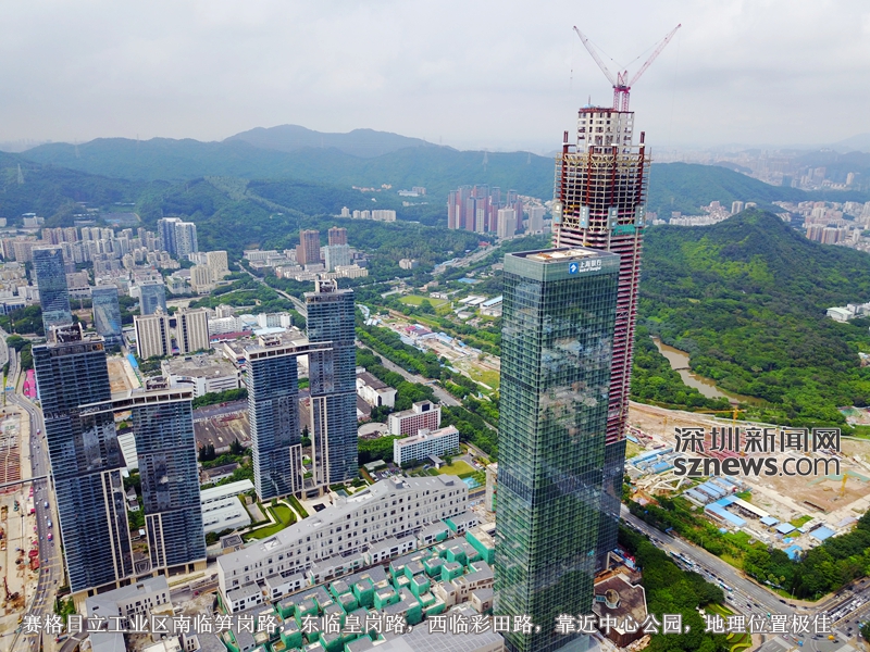 赛格日立旧工业区升级改造(北区)项目,由地下2层,地上49层、62层不等,高172.85米、299.9米的4栋塔楼组成,总建筑面积260238.2平方米,合同造价17亿元,建成后,一批世界500强企业的总部将设在这里。该工程2012年5月开工以来,4栋塔楼同时施工,以5天半一个结构层(单层面积5000平方米)速度向上攀升。