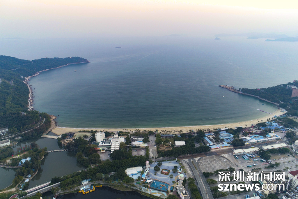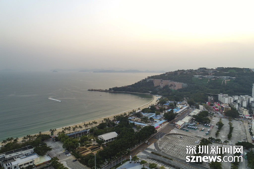 小梅沙片区鸟瞰,非休息日的海滩略显冷清。