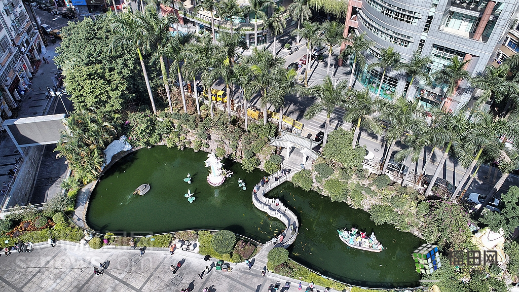附近居民来到文化广场前的池子投喂锦鲤。