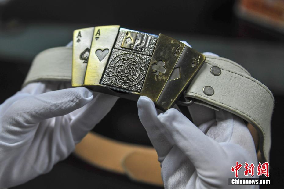 1月30日,辽宁沈阳,沈阳桃仙国际机场安检中心工作人员展示腰带打火机。当日在沈阳桃仙国际机场,展示了近期被查获的手机打火机、口红打火机、腰带打火机等各类打火机10余款。2018年春运工作从2月1日即将开始,为确保机场春运工作安全、正常、有序,沈阳桃仙国际机场安检中心将加大检查力度,严格执行“三品”查堵制度,重点查处夹带易燃易爆危险品乘坐飞机。中新社记者于海洋 摄