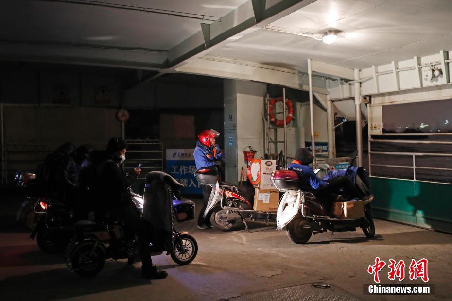 1月31日晚,上海轮渡东嫩线上运营的最后一条非空调普通轮渡结束了运营,至此,上海市轮渡公司所属黄浦江上17条轮渡航线实现了空调轮渡全覆盖,上海民众最为熟悉的“橙色系”轮渡全部退出历史舞台。图为民众乘坐最后一条非空调普通轮渡摆渡过江。中新社记者 殷立勤 摄