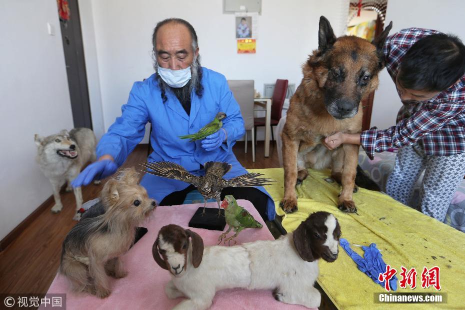 狗年到来,来找他将离世的爱犬和其他宠物做成标本的人络绎不绝,动物们就这样老郭手中复生。据老郭介绍,进入狗年,他接到了几位主人送来的三只过世狗狗来做标本。从20岁出头开始制作第一只猫头鹰标本以来,在老郭手下复生的动物大到汗血赛马、狮子、野猪,小到蜂鸟,近些年仅制作赛马标本就有50匹,其它的宠物标本有数千余件。文字来源:法制晚报 图片来源:视觉中国
